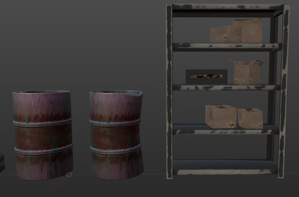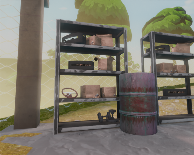a Barrel, steering wheel, 2 box styles, 1 bucket, 6 junk parts